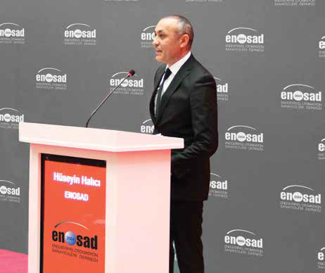 yönetim kurullarına teşekkür ediyorum” dedi. 6. Dönem Yönetim Kurulu Başkanı Dr. Hüseyin Halıcı da açılış konuşmasının ardından geçmiş dönem faaliyetlerini toplantının katılımcılarına aktardı. Yönetim kurulu faaliyetlerinin oy birliğiyle ibra edilmesini takiben ENOSAD Yönetim Kurulu Başkan Adayları Talat Avcı ve Dr. Hüseyin Halıcı birer konuşma gerçekleştirdi. Başkan adaylarının gelecek dönem hedeflerini anlatarak yönetim kurulu listelerini açıklamalarının ardından divan heyeti başkanı Osman Kurdaş, adaylara teşekkür etti. Yönetim kurulu aday listelerinin oylanması sonucunda, Dr. Hüseyin Halıcı yeniden ENOSAD Yönetim Kurulu Başkanlığı görevine seçildi. Dr. Halıcı, oylamanın ardından yaptığı konuşmada şunları söyledi: “Hedeflediğimiz projeleri hayata geçirmek amacıyla iki yıl için tekrar ve daha da artan bir ivmeyle çalışacağız. Bu yeni dönemde yapılacak çalışmalara tüm üyelerin katkı ve desteğini bekliyoruz. Üyelerimizden gelecek önerileri de değerlendirerek sektör adına hep birlikte daha iyi işler yapmak istiyoruz. Genel kurula katılan ve destek veren tüm üyelerimize teşekkürlerimi sunuyorum.” Genel kurula katılan üyelerin başkan ve yönetim kurulunu tebrik etmesinin ardından ENOSAD 7. Olağan Genel Kurulu tamamlandı.