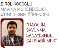 olan İstanbul’a yakınlık belirleyici unsurdu. Ayrıca sanayi kuruluşlarıyla bağlantıları olan köklü bir üniversitede eğitim görmek istedim. Tüm bu nedenlerle Kocaeli Üniversitesi en doğru seçenekti. Teknik imkanlar açısından çok iyi bir noktadayız. Özellikle laboratuvarlarımız ihtiyaçlarımıza cevap verecek nitelikte. Üniversitemizde duyurusu yapılan sanayi projelerinde birçok arkadaşımız görev aldı. Bölümümüz ile sanayi kuruluşlarının işbirliği üst düzeyde. Teknokentlerde şirketi olan birçok hocamız var. Öğrenciler hocalarımızın üstlendiği projelerde zaman zaman görev alıp eğitimlerini pratik alana taşıma fırsatı bulabiliyor. Bu durum hem biz öğrenciler, hem sanayi kuruluşları hem de okulumuz açısından çok faydalı sonuçlar doğuruyor. Üniversite-sanayi işbirliğinde aslında amaçlanan da zaten budur. Bitirme projelerimiz kağıt üzerinde kaldıktan sonra hiçbir anlam ifade etmez. Okul bittikten sonra sahada görev almak istiyorum. Masabaşı mühendislik bana göre değil. Mühendisin ellerinin kirlenmesi gerektiğini