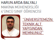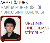 korkuların ne kadar yersiz olduğunu gördüm. Öğrenmeye, gelişime açık, çalışmaktan usanmayan gençler için makine mühendisliği tercihinin doğru olduğu kanaatindeyim. Okul özelinde değerlendirirsek şanslı gençler arasındayız. İmkanlarımız yeterli, akademisyen kadromuz gerek bilgi düzeyi, gerekse de bu bilgileri bize aktarma yönünde oldukça başarılı. Ayrıca okulumuzun sağladığı staj olanaklarını da teorik eğitimin yanına pratiği dahil etme açısından çok önemli görüyorum. Türkiye’deki