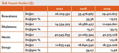 DIŞ TİCARET DENGESİ YÜZDE 31 ARTTI Ülkemiz ile Avustralya arasındaki dış ticaret dengesi ülkemiz aleyhine açık veriyor. Ancak Avustralya’dan gerçekleştirdiğimiz ithalattaki azalma oranı, ihracatımızda yaşanan düşüşten daha fazla oldu. Dış ticaret dengesi 2009 yılında bir önceki yıla göre yüzde 31,59 artış gösterdi. 2009 yılında iki ülke arasındaki dış ticaret hacmi 924,3 milyon dolar kaydedildi. Avustralya’ya yönelik ihracatımız 2009 yılında yüzde 17 azalarak 304,8 milyon dolar gerçekleşti. Söz konusu ülkeye gerçekleştirdiğimiz ihracatta ilk on madde arasında yer alan “Mineral yakıtlar, mineral yağlar ve müstahsalları, mumlar” mal grubunda yaşanan ihracat artış oranı dikkat çekiyor. “Makine ve aksamları” 2009 yılında Avustralya’ya ihracatımızda 29,4 milyon dolar ile ikinci sırada yer alıyor.Avustralya’dan ithalatımız 2009 yılında yüzde 25 gerileyerek 619,5 milyon dolar seviyesinde gerçekleşti. Avustralya’dan ithal ettiğimiz ilk on kalem arasında ithalatında artış görülen kalemler “Süt ve süt mamulleri, kuş ve kümes hayvan yumurtaları, bal gibi”, “İnorganik kimyasal müstahsallar, organik, inorganik bileşikler”, “Eczacılık ürünleri” ile “Optik, fotoğraf, sinema, ölçü, kontrol, ayar cihazları, tıbbi alet”tir.