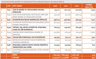 Avustralya dünyanın en kentleşmiş ve teknolojik açıdan ileri düzeyi yakalamış ülkelerinden biridir. Makine ve aksamları ithalatı, 2008 yılında Avustralya’nın genel ithalatından yüzde 2,6 pay aldı. Türkiye, Avustralya’nın makine ithal ettiği ülkeler...