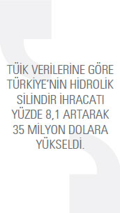 üşterilerle çalışıyor. Belki uzun yılların alışkanlığı olduğu, belki de aynı dili konuştuğumuz için hedef pazarımız hep gelişmiş ülkeler oldu. Hizmet verdiğimiz ana sektörler çimento, maden, iş makineleri, demir ve çelik fabrikalarının özel hidrolik presleri, baraj kapağı silindirleri, limanlarda kullanılan yüksek kaldırma gücündeki vinçler, hidrolik pres silindirleridir. Uzmanlık alanımız ise ağır sanayide kullanılan, özel amaçlı ve büyük ebatlı, müşteriye özel hidrolik ve pnömatik silindir üretimidir. Üretimimiz, ISO 9001:2008 yönetim, EN 1090.2-2008 kaynak kabul ve TS EN ISO 3834-2 kaynak kalite standartlarına uygun olarak gerçekleştiriliyor. Talebe göre imalat yaptığımız için oldukça esnek bir yapıya ve teknik altyapısı güçlü ürün geliştirme birimine sahibiz. Nikel-krom kaplama komatik nusundaki yatırımımızı ise yeni tamamladık. Artık NiCr kaplı hidrolik silindirler de üretebiliyoruz. Yıllık 500 çeşidin üzerinde farklı tipte silindir geliştiriyoruz. Silindir üretimimizi artıracak donanıma ve pazara ulaşmak, bu amaçlarımız doğrultusunda gereken yatırımları yapacak güçlü bir ekonomik ve teknik yapıyı kurup muhafaza etmek ileriye yönelik hedeflerimizdendir. Firmaların Ar-Ge için akademik destek alamaması önemli bir sorundur. Türkiye olarak henüz teknoloji geliştiremiyor, sadece var olanı kullanabiliyoruz. Bu nedenle sanayinin akademisyenlerle iş birliği içerisinde olması zaruridir. Türkiye makine sanayisi olarak teknoloji ve bilgiyi üretip satabildiğimiz zaman dünya sıralamasında ileri gidebileceğiz. Akademik kurumların Ar-Ge faaliyetlerinden ekonomik gelir sağlamasının yolu yeni kanun ve yönetmeliklerle açılmalı ki bu konularda çalışan akademik personel sayısı, yapılan akademik çalışma sayısı ve sanayi kuruluşları ile yapılan iş birliklerinin sayısı ve niteliği artsın. Türkiye’den yapılan hidrolik silindir ihracatının yüzde 60’ına yakınını tek başına karşılayan bir şirket olarak, ülke ekonomimize yaptığımız katkının haklı gururunu yaşıyoruz. Gerek yurt içinde, gerekse yurt dışında yeterince rekabet edebilmek; 2023 vizyonu içerisinde hedeflenen 500 milyar dolarlık ihracat hedefine gereken katkıyı üretebilmek için teşvik politikalarında yapısal değişiklik gerektiğine inanıyoruz. Sektörel sorunlarımızın hidrolik alanına has olduğunu düşünmüyorum. Eleman yetersizliği, iş disiplinsizliği, tahsilat güçlüğü, oynak kur, plansız büyüme, yetersiz teşvik, adaletsiz iş ve işçi kanunu, verimsizlik gibi makine sektörünün genelinde gözlenen temel problemlerle uğraşıyoruz. Bunlara rağmen üretmeye devam ediyoruz. Çözüm noktasında insanlara düşen temel görev, herkesin üstüne düşeni yapmasıdır.”