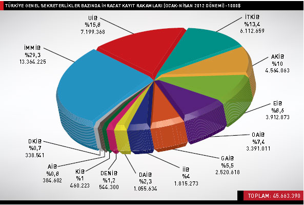 Ocak-Nisan dönemi arasında 20 milyon 903 bin dolar seviyesindeyken 2012 yılında bu rakam 26 milyon 189 bin dolar seviyesine çıktı.