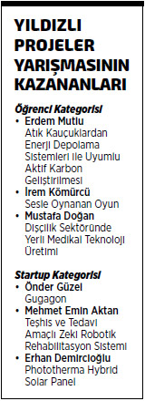 Yapılan değerlendirmede iki kategoride ilk üçe giren projeler belirlenirken, “Öğrenci” kategorisinde birincilik ödülünü “Atık Kauçuklardan Enerji Depolama Sistemleri ile Uyumlu Aktif Karbon Geliştirilmesi” ile Erdem Mutlu; “Startup” kategorisinde ise birincilik ödülünü “Gugagon” projesiyle Önder Güzel kazandı.