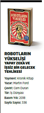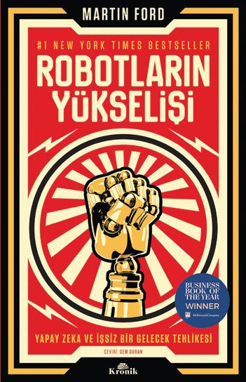BİR ROBOT VE YAPAY ZEKÂ UZMANI OLAN MARTIN FORD, KRONİK KİTAP’TAN ÇIKAN “ROBOTLARIN YÜKSELİŞİ- YAPAY ZEKA VE İŞSİZ BİR GELECEK TEHLİKESİ” BAŞLIKLI KİTABINDA, BİLGİ TEKNOLOJİLERİ VE SANAYİDE OTOMASYONUN GEÇMİŞTEN GÜNÜMÜZE VE GELECEĞE PİYASALARLA İŞYERLERİ ÜZERİNDEKİ ETKİSİNİN NE OLDUĞUNU VE OLACAĞINI ÖRNEKLER VE İSTATİSTİKLERLE ANLATIYOR. FORD’A GÖRE TEKNOLOJİNİN İLERLEMESİ, GELECEKTE ÖNCELİKLE İŞSİZLİK VE PLÜTOKRATİK DÜZENİN YERLEŞMESİ TEHDİTLERİNİ BERABERİNDE GETİREBİLİR.
