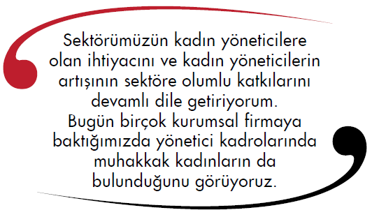 Hiçbir sorunla karşılaşmadım, aksine; yaptığım işler ve sarf ettiğim gayret görüldükçe sürekli takdir edildim. Galiba çoğu kişi sektörde kadınların da 77 Sektörümüzün kadın yöneticilere olan ihtiyacını ve kadın yöneticilerin artışının sektöre olumlu katkılarını
