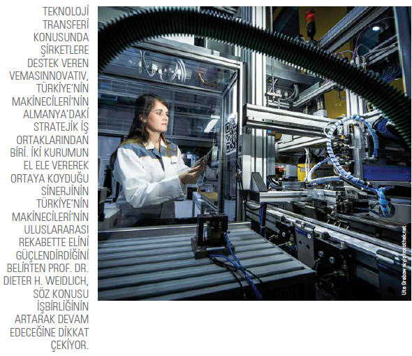 Fraunhofer Enstitüsü IWU, sektörde araştırma ve geliştirme alanında yeniliklerin öncüsü olarak görülüyor. Kuruluş, işbirlikleri kapsamında yeni potansiyeller yaratıyor, çözümler sunuyor, teknoloji geliştiriyor. Fraunhofer Enstitüsü IWU’nun faaliyet alanına biraz daha odaklanacak olursak; makine sistemleri, bileşenler, teknolojiler ve süreçler temelinde gösterdiği başarıların ön plana çıktığı görülüyor. Kuruluş, 550 nitelikli çalışan ile Almanya’nın Chemnitz, Dresden ve Zittau kentlerinde hizmet veriyor. Sadece makine imalatı için değil, otomotiv, havacılık, tıp, ve elektrik alanında da hizmet sunan Fraunhofer Enstitüsü IWU çalışma ortaklıklarını rekabette yeni fabrika konseptleri, insanın üretimdeki rolü, kaynak verimliliği sağlayan teknoloji alanlarında güçlendiriyor. Fraunhofer Enstitüsü IWU’nun desteğiyle 2014 yılında kurulan VEMASinnovativ de çatı kuruluşu gibi geleceğin üretim teknolojisi için çalışıyor. VEMASinnovativ bilgi, tecrübe ve teknoloji transferi konusunda şirketlere destek veriyor. Türkiye makine sektörüne önemli yenilikler getirecek Türkiye’nin Makinecileri ile VEMASinnovativ işbirliğinin kapsamını ve detaylarını VEMASinnovativ CEO’su Prof. Dr. Dieter H. Weidlich’e sorduk.