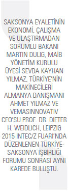 Başta Türkiye’nin Makinecileri olmak üzere Türkiye’de Taşıt Araçları Yan Sanayicileri Derneği (TAYSAD) ve Konya Ticaret Odası (KTO) ile de işbirliği yapıyoruz. Türkiye’nin Makinecileri ile ortaklığımız, Ekonomik İşler, Çalışma ve Ulaştırmadan Sorumlu Saksonya Bakanı’nın katılımıyla 2014 yılında imzalanan mutabakat zaptı ile başladı. Türkiye’nin Makinecileri ile söz konusu olan üç temel işbirliği alanımız şunlardır: Saksonya ile Türkiye merkezli şirket arasındaki işbirliğini desteklemek, inovasyon teknolojilerine ilişkin atölye çalışmaları ve forumların uygulanması ile Ar-Ge alanında işbirliği.