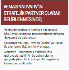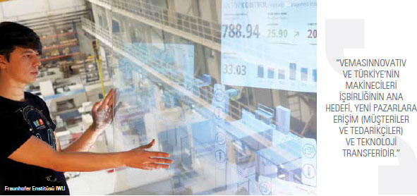 Türkiye’nin Makinecileri’nin Almanya’daki stratejik iş ortaklarından biri olan VEMASinnovativ, makine sektörünün lider ülkesi olan Almanya’da faaliyet gösteriyor. Teknoloji, bilgi ve tecrübe transferi temelinde üç yıldır faaliyet gösteren kurum, her ne kadar genç olsa da hem kurulduğu Saksonya eyaletinin hem de çatı kuruluşu olan ve makine takımları ve şekillendirme teknolojisi için çalışan Fraunhofer Enstitüsü IWU’nun makine sektöründeki tecrübeleri ile çok köklü bir geçmişe dayanıyor. Fraunhofer Enstitüsü IWU çatısı altında faaliyet gösteren VEMASinnovativ, Türkiye’nin makine sanayisinin gücüne inandığından dolayı Türkiye’nin Makinecileri ile işbirliğini her geçen gün güçlendiriyor. İki kurum arasındaki işbirliği, inovasyon ve teknoloji transferi dışında eğitim ve fuar desteğini de kapsarken, söz konusu ortaklığın farklı alanlara