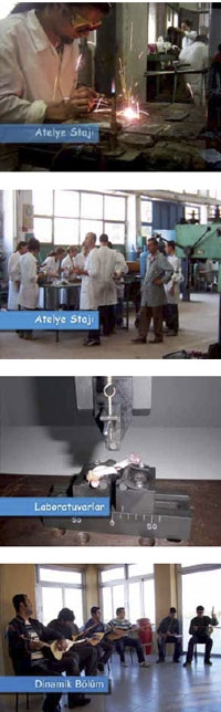 Eğitim sistemlerinde özellikle ilk iki yılın ağırlıklı olarak teorik derslerden oluştuğunun altını çizen Prof. Dr. Ali Güngör; “Bölümümüzde birinci sınıf öğrencilerine mühendisliğin temel dersi olan fizik dalında teorinin yanında uygulama yapabilmeleri için mekanik ve elektrik konularında laboratuar uygulamaları yaptırılmaktadır. Ayrıca günümüzde bilgisayar bütün mühendislik dallarının ayrılmaz bir parçası haline gelmiştir. Bu amaçla birinci ve ikinci sınıf öğrencilerimiz bilgisayar programlama I ve II derslerinde bilgisayar programlamanın temellerini öğrenme ve uygulama fırsatı bulmaktadırlar. Birinci yılın yaz döneminde ise, zorunlu atölye stajı ile öğrencilerimizin teoride öğrendiklerini uygulamaya geçirme becerilerini geliştirmeleri amaçlanmıştır. Üçüncü ve dördüncü yılda ise, öğrencilerimizin yaratıcılıklarını kullanabilecekleri, teorik derslerde öğrendikleri teknikleri uygulayabilecekleri Makina Projesi I ve II ve Bilgisayar Destekli Tasarım/ Üretim uygulama dersleri bulunmaktadır. Dördüncü sınıfta yer alan Makina Laboratuarı I ve II derslerinde ise daha önce kazandığı mesleki bilgi ve becerileri kullanma ve yeni durumlarda uygulayabilme yeteneğinin geliştirilmesi amaçlanmıştır. Makina Laboratuarı I kapsamındaki ısıl deneylerde, tamamen bağımsız olarak çalışabilen öğrencilerin yaratıcılıklarının gelişimi ve mezuniyet sonrasında karşılaşabilecekleri yeni durumlara uyabilme becerilerinin gelişimi amaçlanmıştır. Makina Laboratuarı II kapsamında ise mekanik ve malzeme esaslı deneyler ilgili laboratuarlarımızda yaptırılmaktadır” dedi. Seçmeli dersler, öğrencinin termodinamik, üretim yöntemleri, mekanik ve makina teorisi v.b. derslerde öğrendiği temel teorik bilgileri, özel konular üzerinde derinlemesine uygulayabilmeleri ve mühendislik sistemlerinin detaylarını öğrenebilmek açısından önem taşımaktadır. Bu bağlamda Ege Üniversitesi Mühendislik Fakültesi Makina Mühendisliği Bölümü’ndeki seçmeli derslere çok büyük önem veriliyor. Makina mühendisliği uygulamaları konusunda hangi seçmeli derslerin olduğuna ilişkin sorduğumuz soru üzerine Prof. Dr. Ali Güngör bizlere şu bilgileri verdi: Gerekli teknik ve araçları kullanma becerilerinin öğrencilerimize kazandırılmasında özellikle seçmeli derslerimizde gruplama yoluna gidilmektedir. Özellikle öğrencilerimizin değişik ders gruplarından seçimler yapması sağlanmaktadır. Böylelikle örneğin; tasarım ile ilgili bilgisayar programlarının kullanım ve uygulamalarının öğretilmesi doğrultusunda yönlendirmeler gerçekleştirilmektedir. Bölümümüzde ayrıca zorunlu stajlar, eğitim planının ilk üç yılında gösterilmiştir. Öğrenciler staj yerlerini TMMOB Makine Mühendisleri Odası İzmir Şubesi, EBSO kontenjanları ve firmaların özel taleplerinin birikimi ve bölüm öğretim elemanlarının kişisel girişimleri ile bulunuyor.