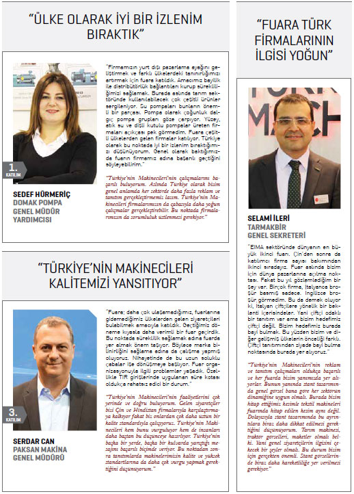 Fuara, Türkiye’nin Makinecileri’ni temsilen Yönetim Kurulu Başkan Yardımcısı Kutlu Karavelioğlu, Yönetim Kurulu Üyesi Zeynep Erkunt Armağan, Makine Şube Şefi Erinç Tarhan ve Makine Şubesi Uzmanı Bahar Özcan Kaynak katıldı. Makine İmalat Sanayii Dernekleri Federasyonu (MAKFED) üyesi derneklerden Araç ve Araç Üstü Ekipman ve İş Makinaları Üreticileri Birliği Derneği (ARÜSDER), Türk Pompa ve Vana Sanayicileri Derneği (POMSAD) ve Türk Tarım Alet ve Makinaları İmalatçıları Birliği (TARMAKBİR) temsilcileri de Türkiye’nin Makinecileri’nin standında hazır bulunarak ziyaretçilere Türk makine sektörü ve üyeleri hakkında bilgi verdi. Türkiye’nin Makinecileri tarafından hazırlanan, Türk firmalarının lokasyonu ve ürünleri hakkında bilgilerin yer aldığı bir broşür ve Türkiye’nin makine ihracatı ile ilgili verileri gösteren kitapçıklar da ziyaretçilere sunuldu.