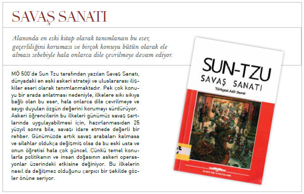 Alanında en eski kitap olarak tanımlanan bu eser, geçerliliğini koruması ve birçok konuyu bütün olarak ele alması sebebiyle hala onlarca dile çevrilmeye devam ediyor. MÖ 500’de Sun Tzu tarafından yazılan...