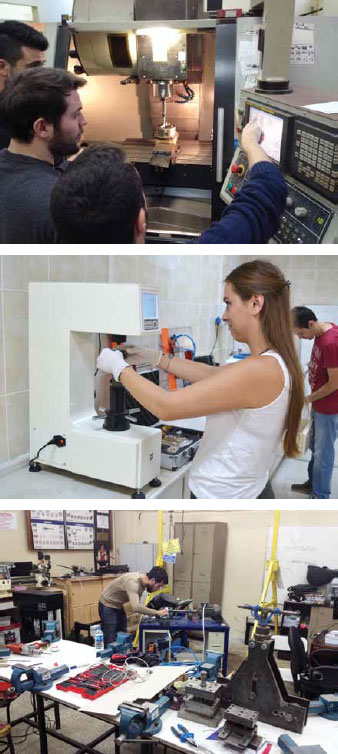 Bölüm öğrencilerimizin eğitim niteliğinin artırılması için aralıksız çalışmayı sürdürüyoruz. Özellikle son sınıf öğrencilerimizin yıl içi ve bitirme projelerinde uygulamaya ağırlık vermelerini sağlayarak üretim sürecine dahil olmaları için çaba harcıyoruz. Proje bazlı çalışmalarında yapılan işi ve ürünü somut olarak görmelerini amaçlıyoruz. Öğrencilerimiz de farklı proje ekiplerinde görev alarak bölümlerinde edindikleri teorik bilgilerini uygulama imkanı buluyor. Örneğin öğrencilerimiz toz metalürjisi laboratuvarında farklı güçlendirici tozlar kullanarak malzemelerin aşınma dirençlerini artırıp bu malzemelerin içyapılarındaki değişimleri, malzeme laboratuvarındaki optik mikroskop ile inceleyebiliyor. Aynı laboratuvarda ürettikleri malzemenin sertlik gibi mekanik özelliklerini bulabiliyor. Ya da mekanizma tekniği dersinde almış olduğu teorik bilgiyle hidrolik ve pnömatik laboratuvarında farklı mekanizmalar yaratıp bunları simule edebiliyor. Bünyemizde bulunan üç eksenli CNC makineyle çeşitli formlarda parçalar üretip metal işleme sırasında karşılaşılan problemleri bire bir gözlemleyebiliyor. Ayrıca öğrencilerimiz CNC ve diğer konvansiyel makinelerle çeşitli plastik enjeksiyon kalıpları yapabiliyor ve bu kalıpları plastik enjeksiyon makinesine bağlayıp plastik üretimi yapabiliyor. Böylece plastik enjeksiyon teknolojisini de lisans eğitimi sırasında uygulamalı öğrenme şansı buluyor.