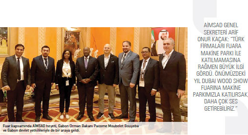 Türk firmalarının pek çoğunun Dubai Wood Showa ilk kez katıldığını anımsatan AİMSAD Genel Sekreteri Arif Onur Kaçak, özellikle Umman ve Suudi Arabistanlı alıcıların Türk makinecilerle yakından ilgilendiğini, Ummanlı alıcıların İstanbul ya da Almanya Ligna Fuarı ile ulaşabilecekleri müşteri kitlesi olmaması açısından Dubai Wood Showdaki ikili görüşmelerin çok önemli olduğunu söyledi. “Bu anlamda üyelerimiz için çok faydalı bir fuar süreci geçirdik” diyerek devam eden Kaçak, fuar boyunca Türk firmalarının Suudi Arabistan, Cezayir, Fas, Tunus gibi Arap ülkeleri ile Hintli ziyaretçilerle çok sayıda ikili iş görüşmesi gerçekleştirdiğinin altını çizdi.
