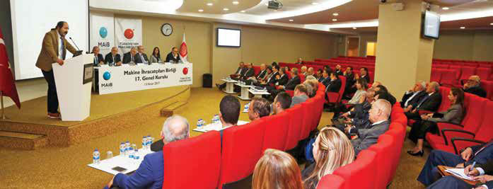 Makine İhracatçıları Birliği (MAİB), 2016 yılına ait faaliyetlerini ve 2017 yılı çalışma programını ele aldığı 17. Genel Kurulu’nu gerçekleştirdi. Kurulda, Şubat ayında alınan kararla kapatılan tanıtım grupları arasında yer alan Makine Tanıtım Grubu’nun (MTG) çalışmalarında emeği geçenlere hatıra plaketi verildi.