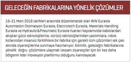 11-14 Şubat 2016 tarihleri arasında düzenlenecek olan WIN Eurasia Metalworking’e ilişkin beklentilerini Moment Expo dergisine anlatan Hannover Messe Genel Müdürü Alexander Kühnel, Metalworking Eurasia kapsamında ziyaretçilerin sac levha işleme teknoloji zincirinin tamamına ulaşabileceklerini söyledi. Son teknolojilerin ön plana çıkacağını kaydeden Kühnel, etkinlikte katılımcıların demir-çelik, alüminyum, metal, otomotiv gibi çeşitli sektörlerin üretim süreçlerini daha etkin hale getirmeye yönelik ürün ve hizmetleri sergileyeceklerini kaydetti. Fuarın sergilenen ürünlerin yanı sıra özel bölüm ve etkinlikleri ile sektöre de yön vereceğini vurgulayan Kühnel, şöyle devam etti: “İlk kez geçtiğimiz yıl düzenlenen Robotics ve Safe@Work özel bölümlerinin yanı sıra bu yıl iki yeni etkinliğe daha imza atan WIN EURASIA Metalworking, ‘Automative Supply Chain’ adı altında gerçekleşecek özel alanda sac işleme ve yüzey işlem sektörünü otomotiv sektörüyle buluştururken, ‘Metal İşleme Endüstrisinde Yüzey İşlem Teknolojileri’ konulu forum aracılığıyla da yüzey işlem teknolojisindeki yeniliklere odaklanacak. Robotik teknolojilerin üretim