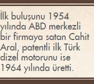 Hüseyin Cahit Aral, 1927 yılında Elazığ’da doğdu. Öğretmen babasının müfettiş olmasının getirdiği tayinler sonucunda, lise yıllarına kadar çocukluğunu Ardahan, Kars, Zonguldak ve Elazığ’da geçirdi. İstanbul Teknik Üniversitesi Makine Fakültesi’ne giriş sınavına tren kazası nedeniyle gecikmesine rağmen sınavdan tam puan alarak fakülte sınavını kazanır. Mezun olduktan sonra 1951-1959 yılları arasında Karayolları 6. Bölge Müdürlüğünde önce mühendis olarak başlayıp ardından Atölye, İşletme ve Makine Şefliği’ne yükselen Cahit Aral, önemli buluşlara imza atar. 700’den fazla makineyle ilgilenirken; makinelerin yaptığı arıza ve kazaların sebeplerini araştırıp çözümler arar. Arabaların virajlarda denge kaybetmeden ve devrilmeden güvenli bir şekilde gidebilmesini sağlayan bir sistem geliştirir. Cahit Aral, santrifüj kuvvetini dengeleyen “Aral Amortisitabilizatörü” adını koyduğu bu buluşuyla 1952 yılında ilk patentini alır. 1954’te buluşunu 30 bin dolara Chrysler’e satar. Chrysler, hidrolik yerine hava kullanarak değiştirdiği buluşu ise 2 milyon dolara bir Alman otomobil firmasına pazarlar. 1959 yılında Kayseri Orta Anadolu Mensucat Fabrikasında Teknik Müdür ve Genel Müdürlük görevini üstlenen Aral; bir örneği Rahmi Koç Müzesinde bulunan patentli ilk Türk dizel motorunu ise 1964 yılında üretir. Buluşun ana teması, mazotun havaya tamamen karışıp yanmasını sağlayan enjeksiyon sistemidir. Jeneratörlerde ve su pompalarında kullanılan ve 25 tane üretilen bu motorun hayata geçme aşaması ise zorluklarla doludur.