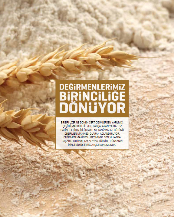 Birbiri üzerine dönen sert cisimlerden yapılmış, çeşitli maddeleri ezen, parçalayan ya da toz haline getiren irili ufaklı mekanizmalar bütünü değirmen makinesi olarak adlandırılıyor. değirmen makinesi üretiminde son yıllarda başarılı bir ivme yakalayan Türkiye, dünyanın ikinci büyük ihracatçısı konumunda.