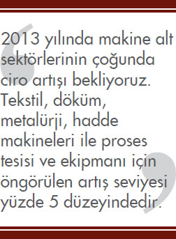 Küresel ekonomik yapı içerisindeki dalgalanmalardan makine sektörünün nasıl etkileneceğini öngörüyorsunuz? 2013 yılı içerisinde sektörde ihracat anlamında hangi üretim kollarının gelişim göstereceğini düşünüyorsunuz?