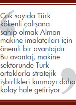 Türk imalatçıları ve sektör dernekleri son yıllarda Türk makinesinin tanınması adına önemli çalışmalar yaptı. Bu tip tanıtım organizasyonlarıyla global ölçekte şirket ve derneklerle ortak hareket edilip, deneyimlerin paylaşılmasının son derece faydalı sonuçlar doğuracağını düşünüyorum. İhracatı artırmak için her fırsat değerlendirilmeli, sergiler, konferanslar, ticari heyetler gibi çalışmalar önemsenmelidir. Çok sayıda Türk kökenli çalışana sahip olmak Alman makine imalatçıları için önemli bir avantajdır. Bu avantaj, makine sektöründe Türk ortaklarla stratejik işbirlikleri kurmayı daha kolay hale getiriyor.