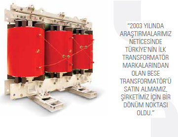 kapsamda tüm çalışmaların tek bir merkezden yönetilmesi bize daha fazla güç kattı. Bu özgüvenle geleceğe daha kararlı bakmaya başladık. Üretimimizi halen Ankara Sincan’daki 1. Organize Sanayi Bölgesi’nde yer alan 36 bin metrekarelik tesislerimizde gerçekleştiriyoruz. Bu tesisin 26 bin metrekarelik kapalı alanında dağıtım, kuru ve güç transformatörleri üretimi yapıyoruz. Bu yıl bünyemizde kurulan Ar-Ge merkezimizle birlikte mevcutta bugün itibarıyla 455 çalışanımız var.