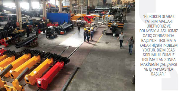 Hidrokon olarak yatırım malları üretiyoruz ve dolayısıyla asıl işimiz satış sonrasında başlıyor. Ürettiğimiz makine sonuçta bir iş makinesi ve ağır şartların hakim olduğu ortamlarda kullanılıyor. Satışa kadar, daha doğrusu teslimata kadar hiçbir problem yoktur. Bizim esas sorumluluğumuz teslimattan sonra makinenin çalışması ve iş yapmasıyla başlar. Birçok sektörün böyle satış sonrası ayağı da yoktur. Teslim ettikleri an sorumlulukları biter. Bir market ürünü sattığı anda sorumluluğu biter ancak üreticinin sorumluluğu bitmez. Biz de iş makinesi ürettiğimiz için satış sonrası hizmetin en yoğun olduğu sektörlerden birinde faaliyet gösteriyoruz. Türkiye’de 10 ayrı noktada sabit ve gezici servislerimizle her noktaya yetişebiliyoruz.