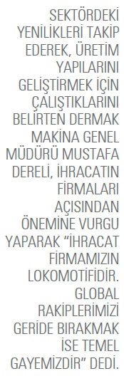 Sektördeki yenilikleri sürekli takip ederek, imal ettikleri ürünlerde enerji verimliliği de dahil olmak üzere standartları yukarıya çekmek için çalıştıklarını belirten Dermak Makina Genel Müdürü Murat Dereli, “Son dönemde mikserlerimizin soğutma hızını artırmak için farklı sistemler geliştirerek total kapasite anlamında rakiplerimizle aramızda fark yarattık” dedi.