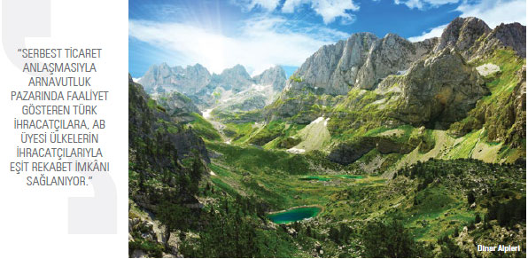 Arnavutluk’un demokratik rejime geçişiyle birlikte, Türkiye ile ikili ilişkileri de oldukça gelişti. İki ülke arasındaki ticaretin hacmi izlendiğinde, mevcut dış ticaret hacminin var olan potansiyele kıyasla oldukça düşük düzeyde seyretmesinin nedeni; 50 yıla yakın bir süre baskıcı bir rejimle yönetilen ve kapalı bir ekonomiye sahip olan ülkenin batılı anlamda bir özel sektöre ve yabancı yatırımların güvenliği açısından sorunsuz bir sisteme henüz kavuşamaması olarak gösteriliyor. 22 Aralık 2006 tarihinde Tiran’da imzalanan “Türkiye Cumhuriyeti ile Arnavutluk Cumhuriyeti Arasında Serbest Ticaret Anlaşması (STA)” 12 Mart 2008’de yürürlüğe girdi. Söz konusu anlaşma kapsamında taraflar arasındaki ekonomik işbirliğinin artırılması ve güçlendirilmesi, mal ticaretindeki kısıtlamaların kaldırılması, uygun rekabet koşullarının yaratılması, karşılıklı yatırımların teşvik edilmesi ve tarafların üçüncü ülke piyasalarındaki ticaret ve işbirliğinin geliştirilmesi hedefleniyor. Anlaşma, sanayi ürünlerindeki gümrük vergileri, miktar kısıtlamaları ve eş etkili vergi ve önlemlerin kaldırılması başta olmak üzere; ticarette teknik engeller, tarım ürünlerindeki taviz değişimi, hayvan ve bitki sağlığı önlemleri, iç vergilendirme, yapısal uyum, damping, acil durumlar, devlet tekelleri, korunma önlemleri, ödemeler, menşe kuralları, devlet yardımları, fikri, sınai ve ticari mülkiyet hakları, kamu ihaleleri ve kurumsal hükümler konularında düzenlemeler içeriyor. Anlaşmayla ihracatçılarımıza, Arnavutluk pazarında AB üyesi ülkelerin ihracatçılarıyla eşit rekabet imkânı sağlanıyor.