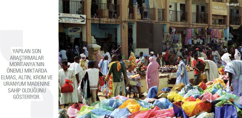 olmasına rağmen bugün beklentiler doğrultusunda somut sonuçlar tam olarak alınamadı. Moritanya hükümeti özel sektör yatırımlarını ülkenin gelişmesi için zorunlu görüp bu yüzden özel sektör yatırımlarını teşvik etme gayreti içindedir. Hükümet aynı zamanda fakirliğin azaltılması hususuna büyük önem veriyor, sağlık ve eğitim sisteminin gelişmesi ve ülkedeki özelleştirmeler için çaba sarf ediyor. Moritanya’da ekonomik gelişme 2010-2011 döneminde uluslararası piyasalarda altın, demir, bakır ve petrol fiyatlarının yüksek seyretmesi nedeniyle yüzde 4’ün üzerinde gerçekleşti. Moritanya’da GSYİH 2010 yılında 3,5 milyar dolara çıktı. 2011 yılında ise 3,2 milyar dolara gerilediği tahmin ediliyor. Kişi başına GSYİH ise 2010 ve 2011 yıllarında 2 bin 200 dolar civarındadır. 2011 yılı tahminlerine göre GSYİH’nin yüzde 19,2’si tarım sektöründen, yüzde 36,6’sı sanayi sektöründen yüzde 44,1’i de hizmetler sektöründen karşılandı. Sanayi sektörü içinde de yer alan madencilik sektörünün tek başına GSYİH’deki payı yüzde 17 civarındadır. Petrol ve doğal gazın GSYİH’deki payı ise bugün için yüzde 7’ler civarındadır ve gelecekte bu payın artması bekleniyor. Moritanya’nın toplam işgücü varlığı 1,4 milyon civarındadır.