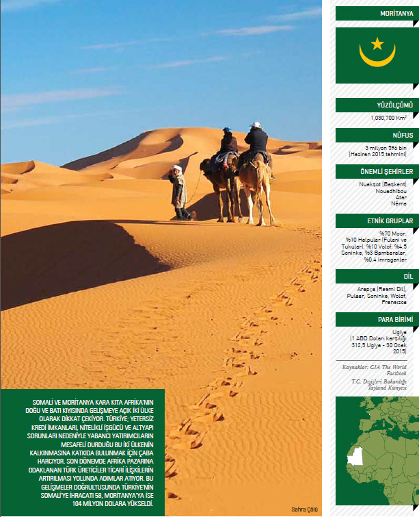 bağımsızlığını isteyen Polisario gerillalarının baskısı sonucu Batı Sahra’dan ayrıldı. Ülkede Fransa’dan bağımsızlığın kazanıldığı tarihten itibaren 10 darbe ve darbe girişimi yaşandı. Ülkede Afrika orijinli siyah Moritanyalılarla Arap ve Berberi ırkından olan beyaz ve siyah Morlar arasında etnik çatışmalar yaşanıyor. Ayrıca Moritanya El Kaide örgütünün tehdit ve saldırılarıyla da mücadele ediyor. Moritanya demokratik açıdan çok partili yarı başkanlık sisteminin uygulandığı bir ülkedir. Çoğulcu liberal ve anayasal düzende idare edilen ülke 2 Temmuz 1991’de yürürlüğe giren bir anayasayla yönetiliyor. Devlet başkanı aynı zamanda hükümetin başkanıdır ve hükümet üyeleri devlet başkanı tarafından belirleniyor. Moritanya’da devlet başkanı çoğunluk oyuyla beş yıllık dönem için seçiliyor. Ülkede iki meclisli bir parlamenter sistem hakimdir. Senato 56 üyeli, milli meclisse 95 üyelidir. Devletin resmi adı İslam cumhuriyeti olmakla birlikte İslam kanunları tam anlamıyla uygulanmaz. Moritanya’da bugün liberal ve demokratik bir anayasa yürürlüktedir. 25 Temmuz 1991’de çoğulcu düzenlemeler ve basın özgürlüğü uygulanmaya başlanmış ve 1992 yılında anayasa çerçevesinde ilk milletvekilliği ve senato seçimleri yapıldı. Ülkede yürürlükte bulunan sistem yabancı yatırımcılara temiz bir iş ve yatırım ortamı oluşmasına imkan tanıyor. Moritanya idari açıdan da başkent yönetiminin dışında 12 idari bölgeye ve 50 yerel birime ayrılmıştır. 2012 yılı tahminlerine göre Moritanya 3,359 milyonluk nüfusuyla dünyada 133. sırada yer alıyor. Nüfusun yüzde 40,4’ü 0-14, yüzde 56,2’si 15-64 yaş arasındadır. 65 yaş ve üzeri nüfussa yüzde 3,5’lik bir orana sahiptir. Ülkenin yaş ortalaması ise 19,5’tir. Ülkede nüfusun tamamı Müslümandır. Moritanya yer altı kaynakları bakımından önemli zenginliklere sahiptir. Ülkede varlığı tespit edilen 250 milyon tonluk demir madeni mevcuttur. Demir madenlerinin büyük bir kısmı ülkenin Kuzeyinde Ruibat bölgesindedir. 1963 yılında çok uluslu bir firmaya verilen demir madenlerinin çıkarılması ve pazarlanması işletmeciliği 1974 yılında millileştirilerek Milli Madencilik Sanayi Kurumuna (SNIM) devredildi. Demir madeninin