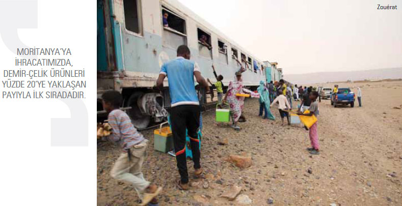 ihraç edilmesi amacıyla Nouadhibou Limanına kadar 700 kilometrelik bir demir yolu döşendi. Moritanya’nın yıllık 10-12 milyon tonluk demir ihraç ediyor. Ülke bu miktarla dünyanın 12. büyük ihracatçısıdır. Demir minerallerinin işlenmesi ve son ürünlere çevrilmesi SNIM tarafından gerçekleştiriliyor. Demir minerali gerek istihdam gerekse gelir açısından Moritanya’ya büyük katkılar sağlıyor. Moritanya bakır üretiminde de büyük bir potansiyele sahiptir. Bakır cevherleri özellikle kuzey bölgelerinde Guelb Mougreine ve Mauritanides çevrelerinde çıkarılıyor. Bu bölgede 550 bin tonun üzerinde bakır elde ediliyor.