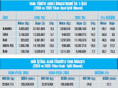 Türkiye’nin Ocak-Eylül 2008 yılı vana ihracatı 255 milyon 38 bin dolar iken 2009 yılının aynı dönemine gelindiğinde yüzde 27,1 oranında düşüşle 185 milyon 860 bin dolar düzeyine gerilemiş.