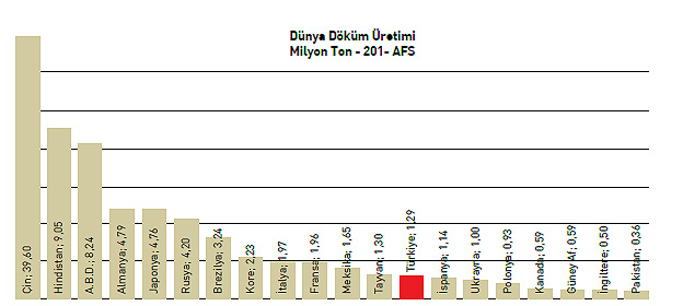 Amerikan Dökümcüler Derneği (AFS)’nin Dünya Döküm Üretim Raporu’na göre; 2011 yılında dünya döküm üretimi 2010 yılına kıyasla yüzde 7,5 artarak 98,6 milyon ton oldu.
