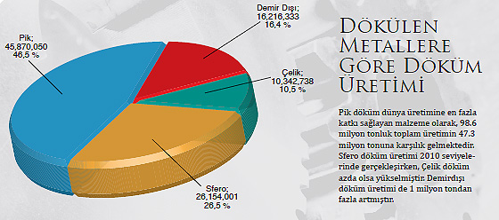 Türk döküm sektörü 2011 yılında toplam 2,58 milyar euro değerinde, 1 milyon 433 bin tonluk üretim yaptı.