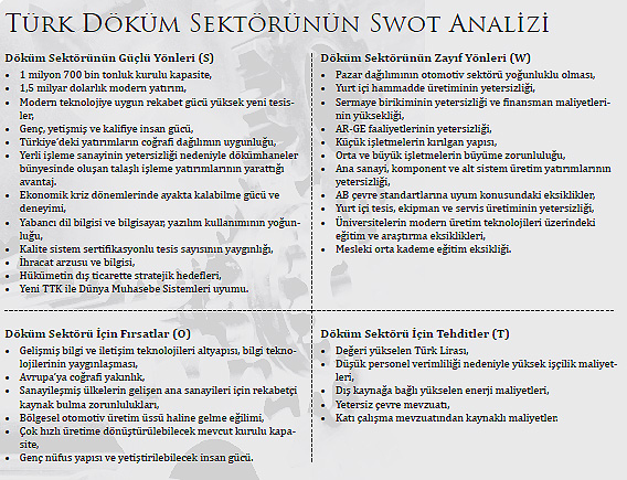 Türk döküm sanayinin, Polonya, Hindistan ve Çin gibi diğer gelişmekte olan ülkelerle düşük katma değerli ürünlerde rekabet etmek yerine, katma değeri daha yüksek ve gelişmiş ülkelerdeki üretim yapılarına kayması ve bu alandaki payını arttırması gerekiyor.