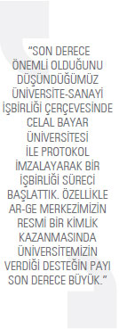 Öncelikle son derece önemli olduğunu düşündüğümüz üniversite-sanayi işbirliği çerçevesinde Celal Bayar Üniversitesi ile protokol imzalayarak bir işbirliği süreci başlattık.
