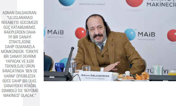 “Bu başarımızla gurur duymakla birlikte daha alınacak çok yol olduğunun bilincindeyiz. Uluslararası rekabette gücümüze güç katabilmemiz, rakiplerden daha iyi bir sanayi stratejisine sahip olmamızla mümkündür. Türkiye, bir sanayi devrimi yapacak ve ileri teknolojili ürün ihracatında ‘ben de varım’ diyebilecek güç ve potansiyele sahip bir ülke. Sanayideki atağın sembolü ise ‘Büyüme Makinesi’ olacak” diyerek sözlerine devam eden Dalgakıran, uluslararası ölçekte rekabetçi bir piyasada Türkiye’nin Makinecileri markasını kabul ettirebilmek için kendi özgün iş yapma biçimlerini ortaya koymaya çalıştıklarını belirtti.
