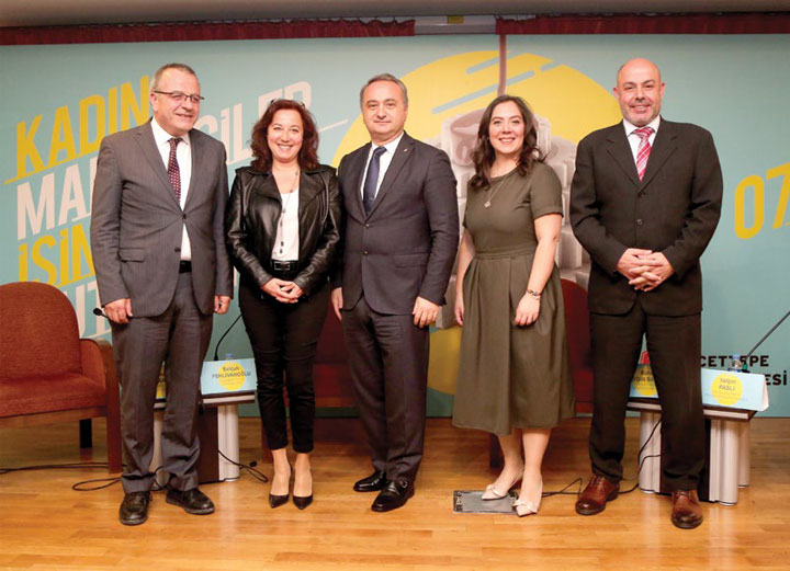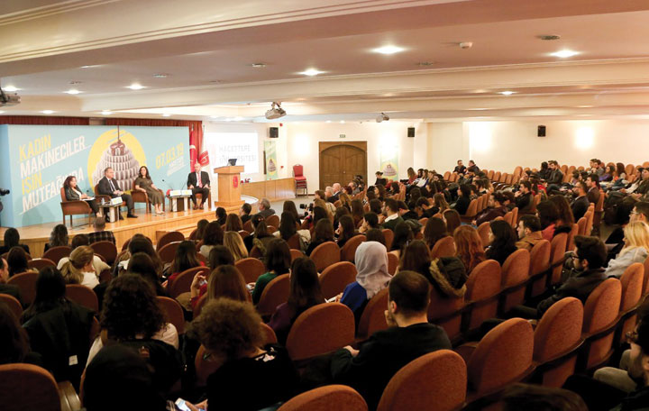 TÜRKIYE’NIN MAKINECILERI, KADINLARIN IMALAT SANAYISINDE ÇALIŞMASINI TEŞVIK ETMEK ÜZERE HAYATA GEÇIRDIĞI “KADIN MAKINECILERLE VAR GÜCÜMÜZLE” PROJESI KAPSAMINDA HACETTEPE ÜNIVERSITESINDE ÖĞRENCILERLE BULUŞTU. MAKINE SEKTÖRÜ TEMSILCILERININ, KATILDIKLARI HER PLATFORMDA KADIN MÜHENDISLERIN SEKTÖRDEKI VARLIĞININ ARTMASI IÇIN ÇALIŞTIĞINA DIKKAT ÇEKEN MAİB YÖNETIM KURULU ÜYESI ZEYNEP ERKUNT ARMAĞAN, “NÜFUSUN YARISI KADINKEN MAKINE SEKTÖRÜNDE BU YANSIMAYI GÖREMEMEK, SEKTÖRÜN EKSIKLIĞİNİ GÖSTERIYOR. KADININ HASSASIYETI, TAKIPÇILIĞI, TITIZLIĞI VE ESTETIK DUYGUSUNUN YANSIMADIĞI BIR SEKTÖRE TAM DEMEK MÜMKÜN DEĞIL. BIZ, YENI NESLIN HAYATA DAHA GÜÇLÜ BAKIŞI ILE BU EKSIKLIĞI GIDERECEĞIMIZE INANIYORUZ” DEDI.