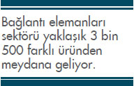 Vida, cıvata, somun, pul, rondela, perçin gibi parçalardan oluşan, sanayi ürünleri dışında insanların yaşamlarında kullandıkları tüm eşyaları da bir arada tutan bağlantı elemanları, makine sektörü açısından da büyük öneme sahip.