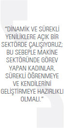 Kadınların erkeklerle birlikte sektörel sivil toplum örgütlerinde daha çok yer almasının diğer kadınlara örnek olacağını ve makine sektöründe çalışmayı tercih etmelerini...
