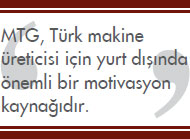 Makine Tanıtım Grubu, her geçen gün kendini yenileyerek, fark yaratan çalışmalarıyla başarılı bir şekilde yoluna devam ediyor. MTG’nin Türk makine üreticisi açısından gerek yurt içinde gerekse yurt dışında önemli bir motivasyon kaynağı olduğunu söyleyebilirim. Güçlenen ve gelişen Türk makine sektörünün dünyadaki bilinirliğinin artmasını son derece önemsiyoruz. Bu noktada MTG’nin çalışmaları makine üreticilerinin yoluna ışık tutuyor. Türkiye’nin 2023 vizyonuyla ilerlediği bu yolda makine sektörünün tanıtımında üstlendikleri etkin rol dolayısıyla, MTG Yönetim Kuruluna ve değerli çalışanlarına teşekkür eder, başarılarının devamını dilerim.