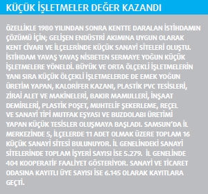 Samsun ilinin ekonomik yapısını oluşturan sektörlerin başında tarım sektörü gelmekle birlikte sanayi, hayvancılık ve turizm de önemli bir yer işgal ediyor. Bununla birlikte, Bağımsız Devletler Topluluğu ve Türk Cumhuriyetlerine yakınlığı, deniz, kara, hava ve demir yolu ulaşım imkânlar ile büyük potansiyele sahip bulunan ilimiz sanayide istenilen seviyeye ulaştığını söylenemez. Samsun ili imalat sanayisinin yaratmış olduğu katma değerinin yüzde 55.6’sı kamu, yüzde 44.4 ‘ü ise özel sektör tarafından gerçekleştiriliyor. Doğu Karadeniz Bölgesi ‘nin en büyük metropol kenti olan Samsun’da, nüfus yoğunluğu sebebiyle ticari ve sınai yaşantısı canlıdır. Özellikle 1980 yılından sonra kentte daralan istihdamın geliştirilmesi için endüstri çağına uygun olarak gerek kent civarında gerekse ilçelerinde küçük sanayi siteleri oluştu. Buna paralel olarak istihdam yavaş yavaş sermaye yoğun olan küçük işletmelere doğru yönelmeye başladı. BunlaSamsun