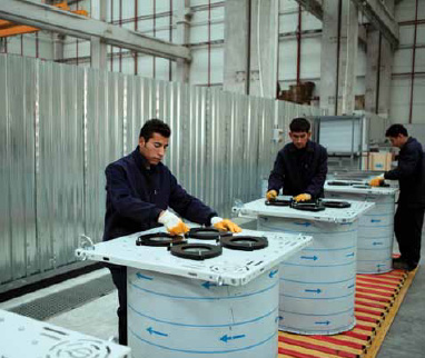 Tüm ürünlerin tasarım ve Ar-Ge çalışmalarını firmamız bünyesinde gerçekleştiriyoruz. Bunun dışında, ürünlerimizde kullanılan bazı parçalar da yan sanayi firmalarımız tarafından bize özel olarak üretiliyor. Fabrikamız­da otomasyona ve endüstriyel üretime büyük önem veriyoruz ve bilgisayar destekli üretim tezgahı kullanıyoruz.Bu şekilde insan hatasını minimize etmek ve kaliteyi sürekli hale getirmek mümkün olabiliyor. Sektörümüzde üre­timde robot kullanan ender, belki de tek firmayız. Kesim ve kaynak işlerinde kullandığımız robotlarımızın yazılımının oluşturulmasında firmamız etkin rol alarak, bu yazılımların ürünlerimize uygun bir hale getirilmesini sağladığını söylemek isterim.