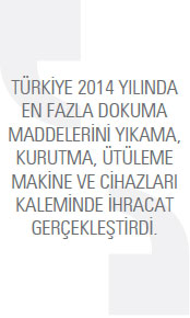 TÜİK verilerine göre Türkiye’nin 84. fasılda Peru’ya gerçekleştirdiği makine ihracatı, 2014 yılında 8,4 milyon dolar olarak kaydedildi. 2013 yılında bu rakam 7,6 milyon dolar seviyesindeydi. Peru’ya yönelik makine ihracatı yüzde 10,9 arttı. Türkiye’nin Peru’ya yönelik makine ihracatının ilk sırasında dokuma maddelerini yıkama, kurutma, ütüleme makine ve cihazları yer alıyor. Söz konusu kalemde Peru’ya 2013 yılında 1,2 milyon dolar değerinde ürün ihraç edilirken bu rakam 2014 yılında 837,6 bin dolar seviyesinde kaydedildi. Söz konusu mal grubunda 2014 yılında ihracat yüzde 33,3 azaldı. Listenin ikinci sırasında bulunan sıvılar için pompalar, sıvı elevatörleri ürün grubunda 2014 yılında gerçekleştirilen ihracatın değeri 755,6 bin dolar olarak kaydedildi. 2013 yılında bu rakam 1,2 milyon dolardı. sıvılar için pompalar, sıvı elevatörleri ürün grubundaki ihracat yüzde 39,4 azaldı. Türkiye’nin Peru’ya makine ihracatında ilk 10 ürün grubu listesinin üçüncü sırasında ise toprak, taş, metal cevheri vb. ayıklama, eleme vb. için makineler bulunuyor. 2013 yılında söz konusu kalemde 167,2 bin dolarlık ihracat gerçekleştirilirken bu rakam, 2014 yılında yüzde 342,8 artarak 740,1 bin dolar olarak kaydedildi. TÜİK verilerine göre 2014 yılında 84. fasıl itibariyle Türkiye’nin Peru’dan makine ithalatı 2014 yılında 63,1 bin dolar olarak kaydedildi. 2013 yılında bu rakam 40 bin dolardı. Türkiye’nin 2014 yılında Peru’dan gerçekleştirdiği makine ithalatı yüzde 58 oranında arttı.