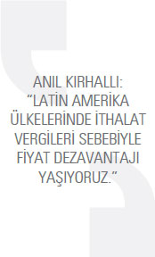 “Firmamız, iki fabrikada toplam 115 kişilik bir ekiple kağıt katlama makineleri ve ıslak mendil üretim hatları imal ediyor. Toplam üretimimizin yüzde 75’inden fazlasını ihraç ediyoruz. Bugüne kadar aralarında Singapur, Finlandiya, Güney Afrika Cumhuriyeti, ABD ve Peru’nun de yer aldığı dünyanın 45’ten fazla ülkesine ürünlerimizi gönderdik. İhracat gerçekleştirdiğimiz ülke sayısını her yıl artırarak markamızın adını dünyaya duyurmak en büyük amaçlarımız arasında yer alıyor. Kansan olarak son beş yılda ihracat hacmimizi de ortalama yüzde 30 oranında artırdık. Önümüzdeki üç yılda bu oranı minimum yüzde 15 daha artırmayı hedefliyoruz. Özellikle Brezilya, Meksika gibi, ülkemizle ikili serbest ticaret anlaşmaları olmayan Latin Amerika ülkelerinde; serbest ticaret anlaşması bulunan Avrupa Birliği ve ABD’deki rakip firmalara kıyasla ithalat vergileri sebebiyle fiyat dezavantajı yaşıyoruz. Tüm bu güçlüklere rağmen 2013 yılında Meksika, Arjantin ve Peru’daki bazı müşterilere satış gerçekleştirebildik. Ancak bu bölgedeki potansiyelin, aldığımız işlerden çok daha fazla olduğunu düşünüyoruz. Sektörde faaliyet gösteren diğer makine firmalarının da karşılaştığı bu problemleri aşmak için ilgili devlet kurumlarının bu ülkeler özelinde daha aktif çalışarak ticari bariyerleri hafifletmeleri ya da tümden kaldırmaları en büyük beklentimiz.”