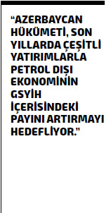 çekme konusunda diğer bölge ülkelerine göre oldukça başarılı bir görünüm sergiliyor. 2004 yılında Birleşmiş Milletler Ticaret ve Kalkınma Konferansı (UNCTAD) tarafından hazırlanan “Doğrudan Yabancı Yatırım Performansı Endeksi”nde 140 ülke arasında birinci sırada yer alan ülkeye doğrudan yabancı yatırım girişinin GSYİH’ye oranı 2006 yılına kadar sürekli bir artış gösterirken, kişi başına düşen yabancı sermaye miktarı ise 2007- 2008 yılında görülen bir azalma sonrası 2009 yılında tekrar artış trendine girdi. Azerbaycan’ın doğrudan yabancı yatırım girişi 2016 yılında 7,3 trilyon dolar seviyesine ulaştı. Bu yatırımların yüzde 83,3’lük bölümü petrol ve doğalgaz sektöründe, geri kalan bölümü ise petrol dışı sektörlerde gerçekleştirildi. Son 10 yıl içerisinde Azerbaycan’a yönelik doğrudan yabancı yatırım girişleri, büyük ölçüde Azerbaycan’ın cari açıklarını finanse ederek ekonomik büyümenin itici gücü oldu. “Azerbaycan Cumhuriyeti Bölgelerinin 2009-2013 Yılları Arasında Sosyal-Ekonomik Kalkınması Devlet Programı”nın başlıca amacı; ülkenin petrol dışı sektörün kalkınması, ekonominin çeşitlendirilmesi, dengeli ve dayanıklı bölgesel sosyal-ekonomik kalkınmanın sağlanması ve halkın refahının artırılması şeklinde belirlenirken, 2008-2011 Devlet İnvestisiya (Yatırım) Siyaseti, petrol dışı sektörün gelişiminin sağlanması için enerji, tarım, su kaynakları, ulaşım, eğitim, sağlık, ekoloji gibi sektörlere yatırımların yapılmasını amaçlıyordu. Azerbaycan, esas itibarıyla petrol ve doğal gazın üretim ve ticaretine bağlı bir ekonomik yapı arz etmesine rağmen, ülke yönetimi petrol dışı alanlarda yatırımların artırılarak, petrol dışı ekonominin GSYİH içerisindeki payını artırmayı hedefliyor. Tarım, hayvancılık, konservecilik, yol, su, enerji nakil hatları, kimya sanayisi, sağlık hizmetleri ve çevre sağlığı öncelik yatırım alanları olarak öne çıkarken, serbest piyasa ekonomisi mantığının henüz yeterince yerleşmemesi, Azerbaycan’ın kalkınma hamleleri önündeki en önemli engel olduğu belirtiliyor.