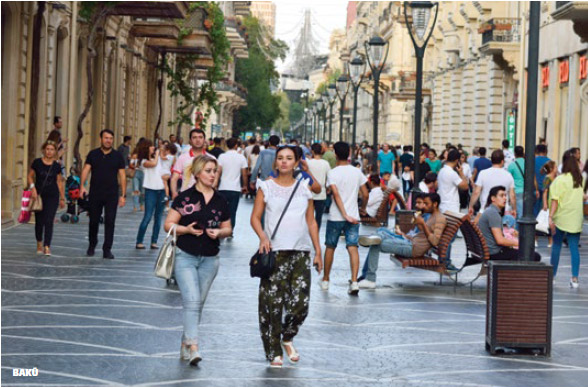 Azerbaycan’ın nüfusu 2017 yılı itibarıyla 9,9 milyonken, nüfusun yüzde 54,1’i şehirlerde, yüzde 45,9’u ise köylerde yaşıyor. Azerbaycan nüfusun yüzde 49’u erkek, yüzde 51’i ise kadınlardan oluşuyor. Ülke nüfusunun yüzde 22,6’sını 0-14 yaş grubu, yüzde 70,2’sini 15-64 yaş grubu, yüzde 6,8’ini ise 65 yaş üstü bireyler oluşturuyor. Ülkede çalışabilir nüfus, toplam nüfusun yüzde 50,09’una karşılık gelirken, Azerbaycan, dağılan diğer SSCB ülkelerinde olduğu gibi 1990’lardan itibaren kentlerde yaşayan nüfusunun bir kısmını kaybetti. Bu durumun yaşanmasında, çoğunluğu kentlerde yaşayan etnik azınlıkların ülke dışına göç etmesi önemli rol oynarken, 2003 yılından itibaren kentsel nüfusta yeniden artış gözlenmeye başlandı ve kentsel nüfusun toplam nüfusa oranı 2010 yılı itibarıyla yüzde 53’e yükseldi. Kentsel nüfusun artışında, petrol sektöründeki gelişmelere bağlı olarak artan yeni iş olanaklarının etkili olduğu düşünülüyor.