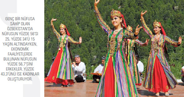 Orta Asya’nın merkezinde bulunan Özbekistan’ın yarı çöl durumunda olması; topraklarının ancak yüzde 10’u tarıma elverişli olmasına rağmen, ülkenin tarımda kullanılan arazisi (266 bin kilometrekare) Türkiye’den daha geniş ve verimli. Ülke görünüm itibarıyla sıradağlardan ve çöllük alandan oluşan bir görüntüye sahip olmakla beraber özellikle sulama kanallarıyla birlikte tarım alanlarının yüzde 95’ini sulayabiliyor. Bu anlamda da ülke, Orta Asya’nın en güçlü sulu tarım yapan ülkesi konumunda. Özbekistan ekonomisi; pamuk, altın, uranyum ve doğal gaz dâhil olmak üzere ağırlıklı olarak meta üretimine dayanır. Bununla birlikte, piyasa ekonomisine geçmeyi hedeflediğini ilan etmesine rağmen ülkede yabancı kaynaklı yatırımı caydıran sert ekonomik kontroller halen devam ediyor. Genç bir nüfusa sahip olan Özbekistan’da nüfusun yüzde 56’sı 25, yüzde 34’ü 15 yaşın altındayken, ekonomik faaliyetlerde bulunan nüfusun yüzde 56,7’sini erkekler, yüzde 43,3’ünü ise kadınlar oluşturuyor. Resmi rakamlara göre yaklaşık 13 milyon kişinin istihdam edildiği ülkede 2,7 milyon işsiz olduğu öngörülüyor. Bununla birlikte, devletin istihdamı artırıcı tedbirler almasına rağmen işsiz sayısı ve gizli işsizliğin, açıklanan rakamların çok daha üzerinde olduğu da tahmin ediliyor.
