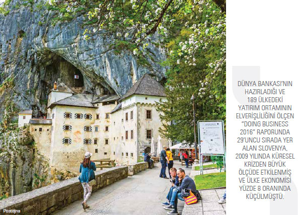 Dünya Bankası’nın hazırladığı ve 189 ülkedeki yatırım ortamının elverişliliğini ölçen “Doing Business 2016” raporunda 29’uncu sırada yer alan Slovenya, 2009 yılında küresel krizden büyük ölçüde etkilenmiş ve ülke ekonomisi yüzde 8 oranında küçülmüştü. AB ile geniş çaplı bir bankacılık krizinin eşiğine gelen ülke finansal yapılanma hamleleriyle toparlanma eğilimine girmesinin ardından 2010 yılında yüzde 1,4, 2011 yılında ise yüzde 1,1 büyüdükten sonra bu çizgisini bozmadı ve yine Dünya Bankası’nın 2016 yılı tahminlerine göre geçtiğimiz yılı yüzde 2’nin üzerinde bir büyüme tablosuyla kapattı. Bununla birlikte işsizlik, son yıllarda Slovenya ekonomisinin en kırılgan noktalarından biri olarak dikkat çekiyor. Halen yüzde 12 seviyelerinde gerçekleşen işsizlik rakamlarına rağmen AB ekonomistleri, Slovenya’nın istihdam sorunlarının ekonomiye beklenenden daha az etki oluşturduğu konusunda hemfikir ve Slovenya’nın istihdam skorlarını başarılı olarak değerlendiriyor. Slovenya’nın elde ettiği gelirin dağılımında ilk sırada yüzde 67,3 ile hizmetler sektörü yer alırken, sanayi yüzde 29,8 ile ikinci, tarımın ise yüzde 2,8 ile üçüncü sırada bulunduğu görülüyor.