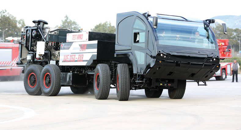 Volkan İtfaiye ilk yerli üretim 8x8 şasili itfaiye aracını ihraç etmeye hazırlanıyor. Beş yıllık Ar-Ge çalışmasıyla yerli mühendisler tarafından geliştirilen ilk yerli 8x8 şasi, 10 milyon euroluk yatırımla hayata geçti.